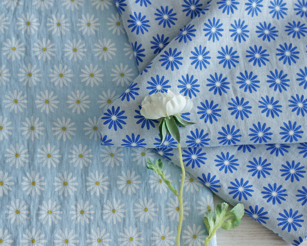 <リトアニア・LINAS>マーガレットデザインのリネンプリント Helga