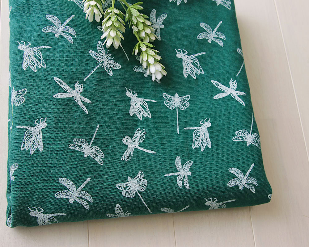 【5mカット】<リトアニア・LINAS><ヴィンテージソフト加工>ドラゴンフライデザインのリネンプリント Ester [M便NG]