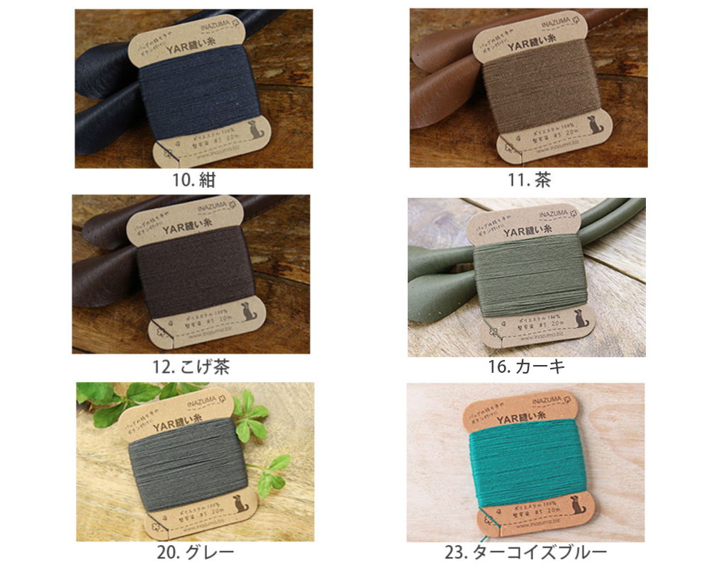 堅牢染の5番手 手縫い糸です。バッグの持ち手などを縫う時にも使える、丈夫な糸です。