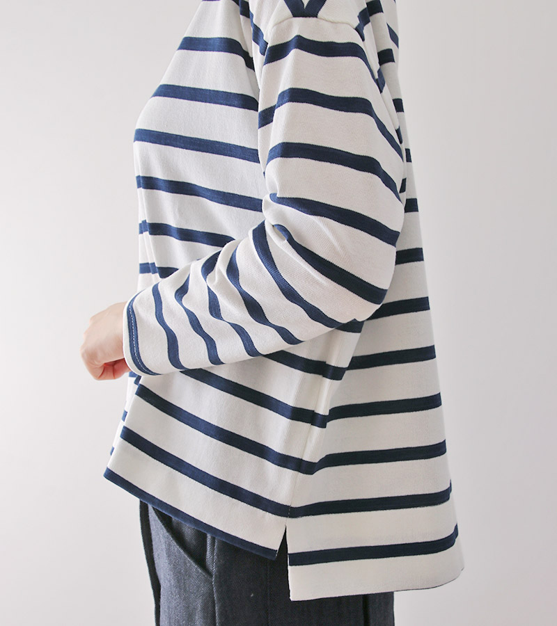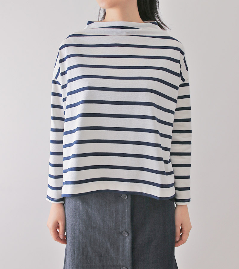 カジュアルで親しみやすいボーダーデザインが特徴の生地です。