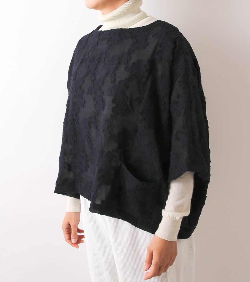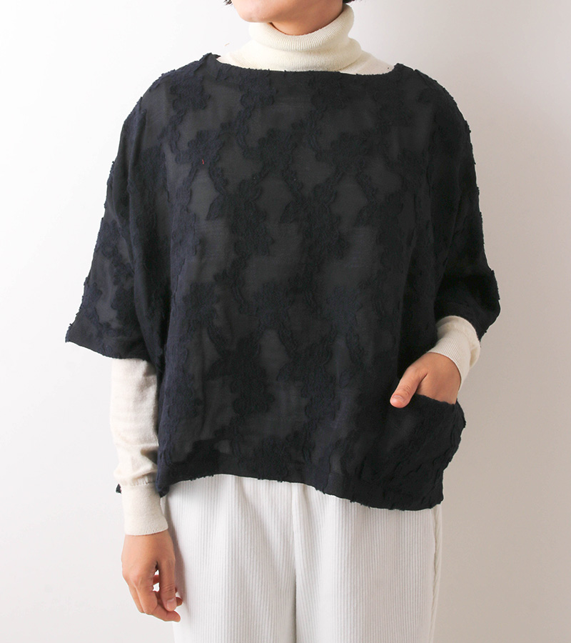 全体的にやや軽さのある厚みで、カットジャガード部分に程よいボリューム感があります。