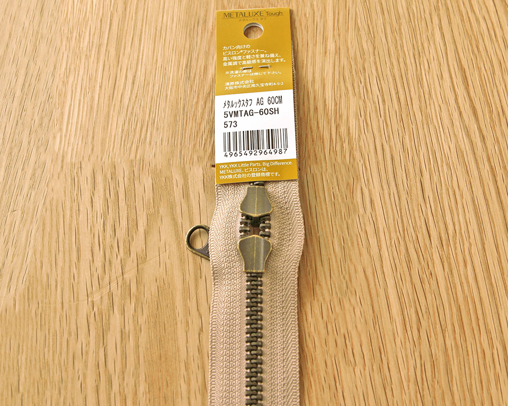 高い強度と軽さを兼ね備え、金属調で高級感を演出します。バッグや小物をアパレル感覚で作れるおしゃれなファスナーです。 手作り作品のワンポイントにおすすめです。