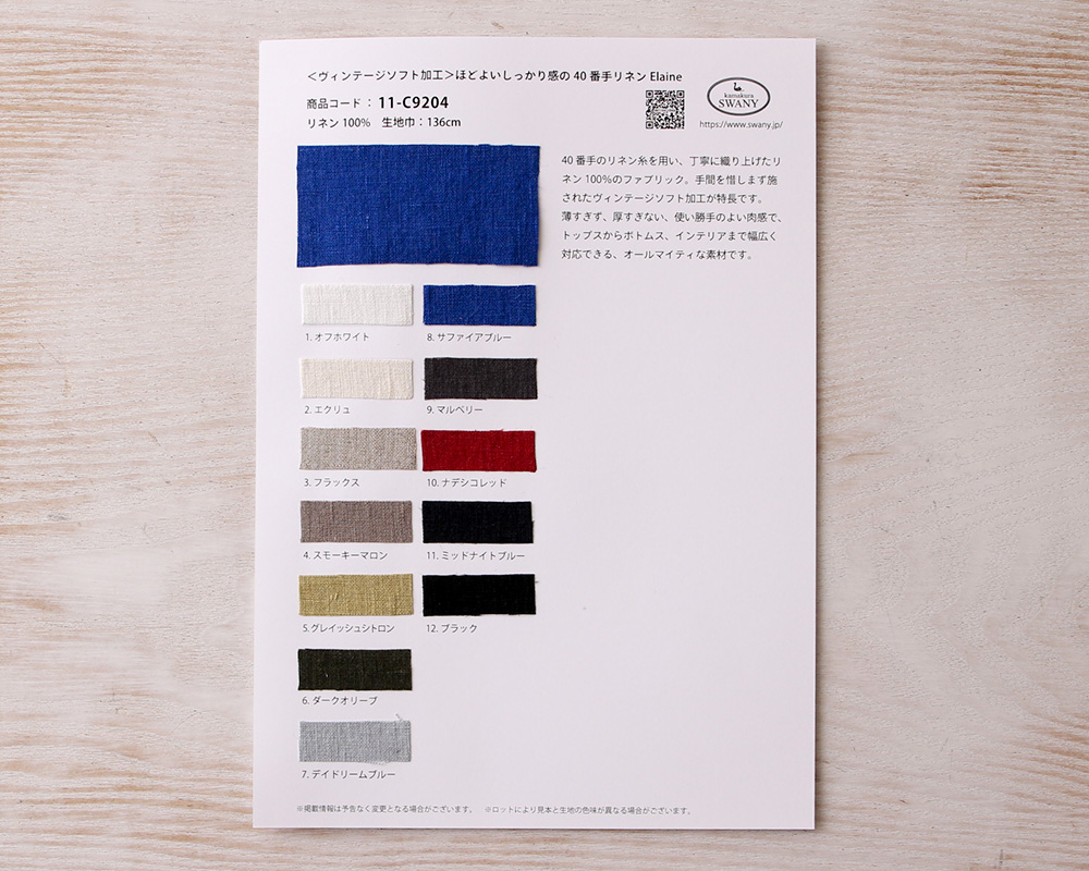 リネン特有のさらりとした質感を残しながら、やわらかさととろみを感じる風合いです。