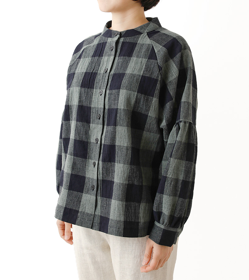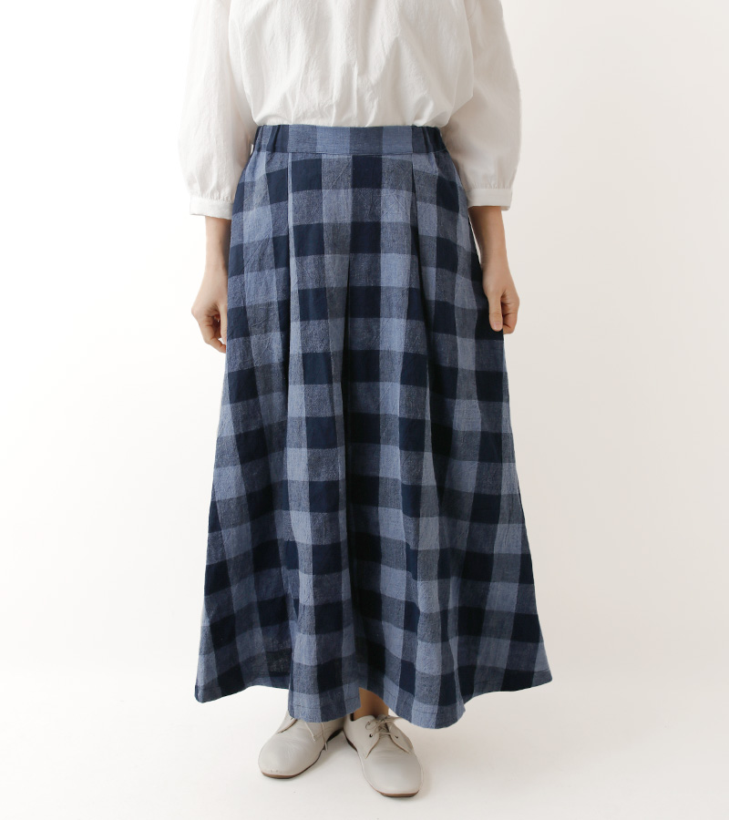 シャツやブラウスなどのトップスはもちろん、ワンピースやたっぷりとギャザーやタックをとったスカート、ワイドパンツにも。軽く羽織れるアウターに仕立てれば、チェックの存在感がほどよいアクセントになります。雰囲気のある柄はインテリアにも映え、空間にやわらかなリズムを添えてくれそうです。